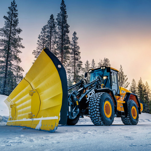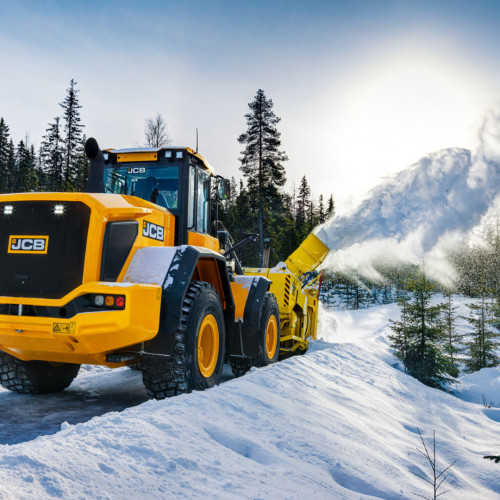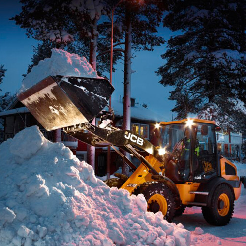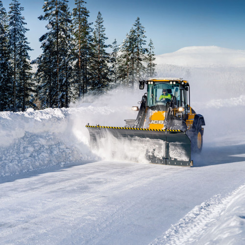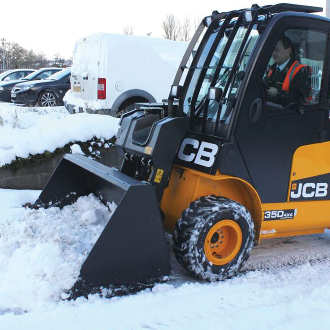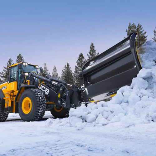 The JCB snow pusher efficiently moves large volumes of snow and can be used for waste clean-up.