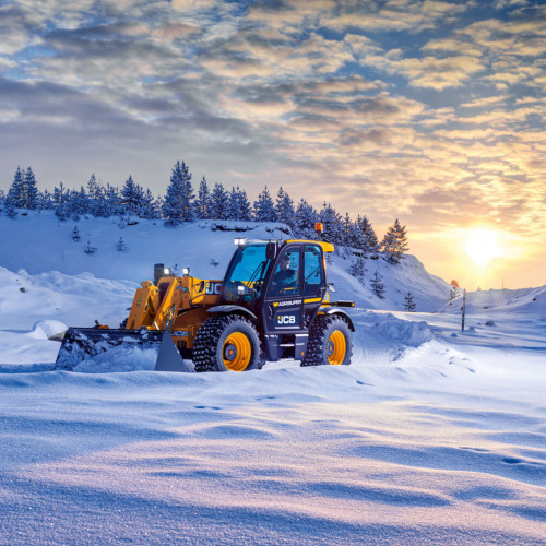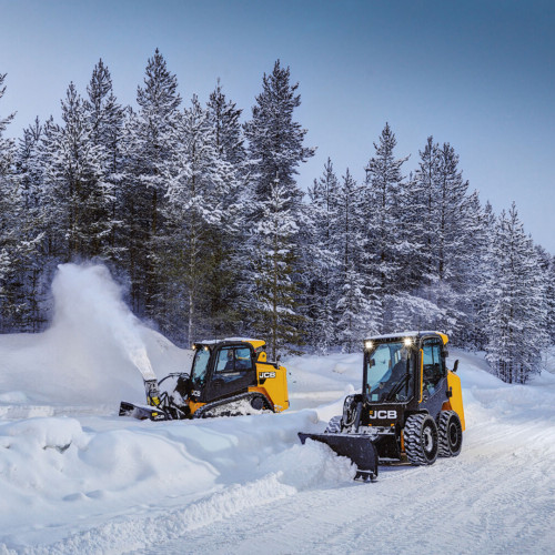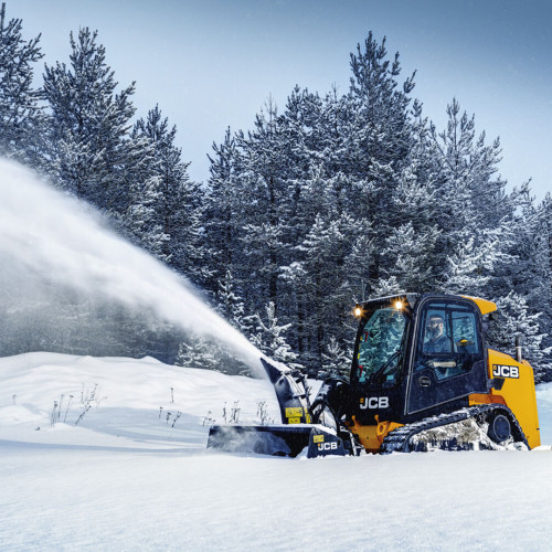 - Poly-lined chute and deflector are easily set-up to direct snow discharge using JCB multi-function controls