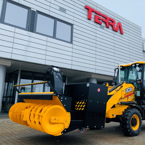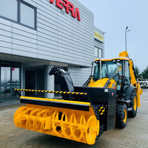 The JCB snow blower is able to throw snow up to 1.4 m thanks to its 2-stage hydraulic blowers.